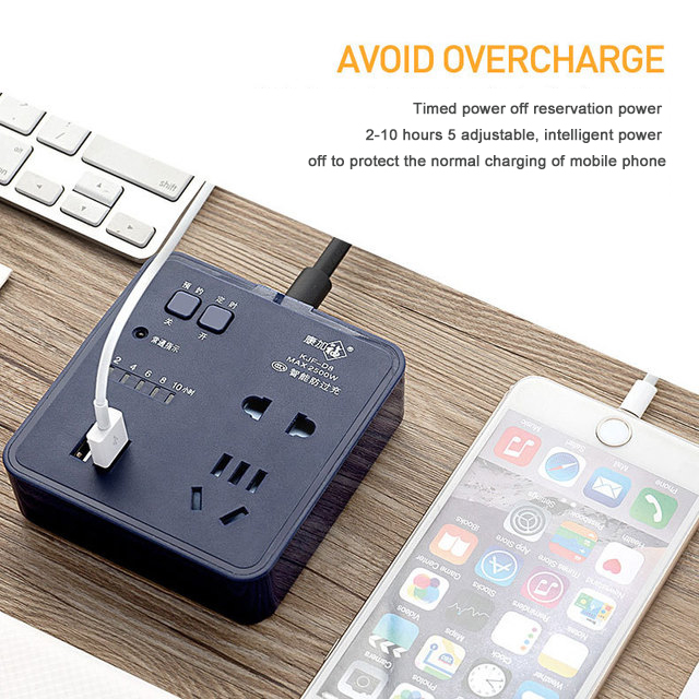 产品描述:AVOID OVERCHARGE One key to solve the USB overcharge problem Timed power-off appointment for 2-10 hours, adjustable in 5 steps, intelligent power-on and power-off to protect the phone from norma